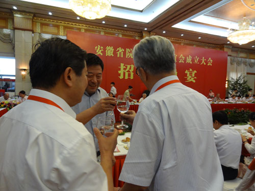 12年7月1日,安徽省院士专家联谊会第一次会员代表大会暨成立大会在合肥稻香楼隆重举行。专家级文王贡酒被大会组委会指定为招待和礼品用酒,为祝贺会议的胜利召开,安徽文王集团副总经理刘强亲自到场祝贺。